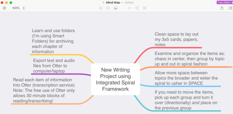 - Copy and paste from the mind map (or Otter file if you skipped the mind mapping) to whichever phone app or computing tool you think will work best depending up the outcome you desire