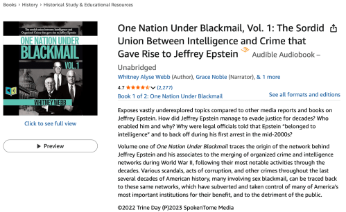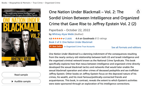 Whitney Webb. I’ve been following Whitney’s investigative reports on Epstein since 2019. She began writing articles in 2016 though, so I was a bit late to find her, but she never fails to amaze me on how she connects the dots! She’s written two books, that are highly intriguing that you can find via this link: https://amzn.to/4cv3MNG