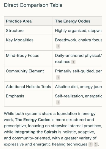 I asked Perplexity, “How does Dr. Sue Morter’s The Energy Codes differ from Sheila Murrey’s Integrating the Spirals?” And here’s what came back to me: