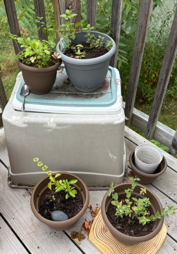 Here’s my herb garden. Outside. In pots on our deck. I’ll be bringing most of them in for the winter in a few weeks.