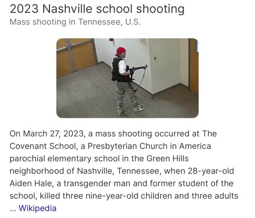 Last night, I read this post on Substack and wasn’t sure it was true. But after seeing other reports this morning and catching the pronouns “their” and “they” apparently we have had yet another trans person go on a killing spree.