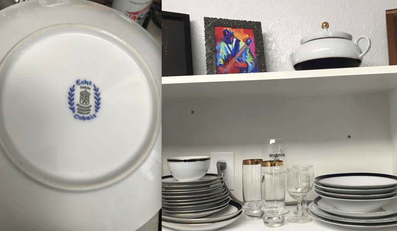 Now that we’re in this apartment I am using my China. When we rented the condo it was furnished and we didn’t have any need for our dishes since we had all the owner’s stuff that was there. The condo had a set of a microwavable melamine type of Corning or something. We used those for two years while we were living in there.