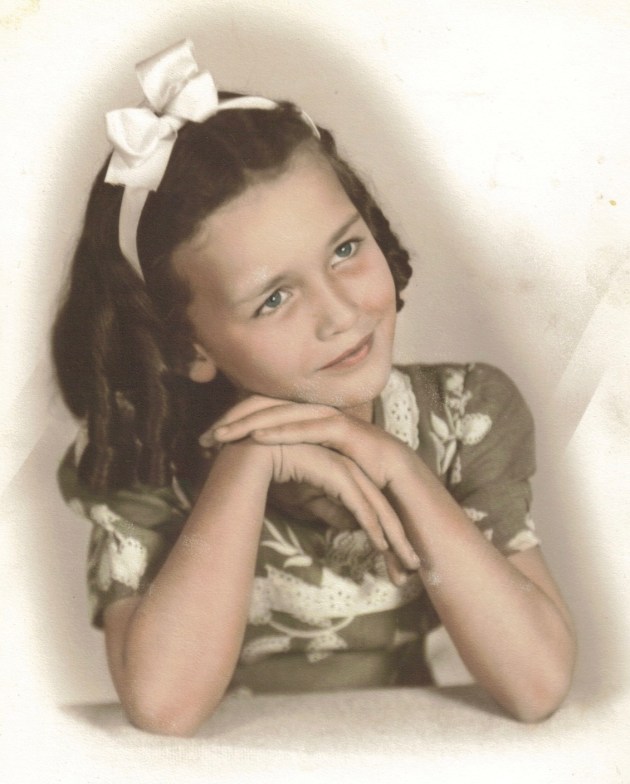 My mother, BettyAnn, had the most amazing naturally curly hair. Mom used to tell me how her mother (my grandmother), would take mom’s hair, section by section, and wrap it around her fingers to create a stunning look. Even as a young girl, in this portrait, you can see how mom’s ringlets would dangle. Also, check out that middle part! Yes, parting hair down the middle was often done back then, and that would stay with mom for most of her life.