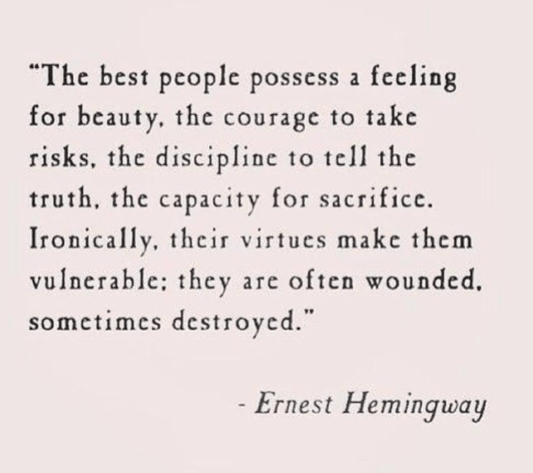 The best people… beauty, courage, risk, discipline, truth, sacrifice… — Ernest Hemingway