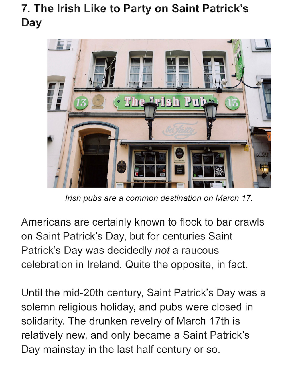 The image has nothing to do with my sweet memories of Ireland though, as the color of Ireland is blue, not green per this article from Food and Wine on the myths regarding St. Patrick’s Day: https://www.foodandwine.com/st-patricks-day-myths-8609708