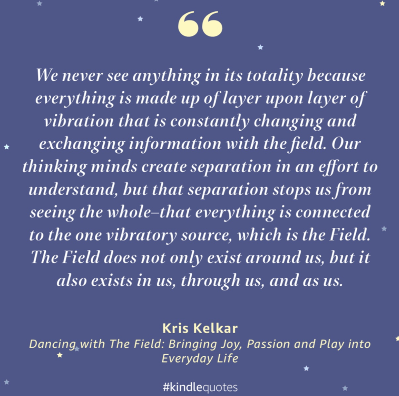 Throughout Dancing with The Field, Kris offers us deeply engaging, easy-to-follow, information on the Science of vibrational interconnections and how The Field underpins EVERYTHING!