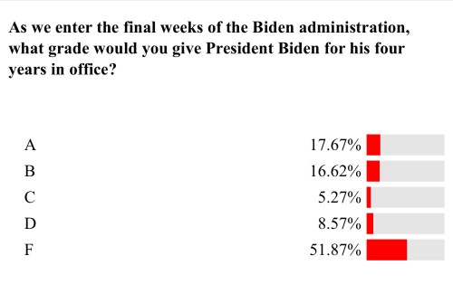 Screen capture: “…what grade would you give President Biden for his four years in office?” I gave him a huge fat F! And I was glad I was with the majority! –Vern Buchanan, Florida Congressman. https://buchanan.house.gov