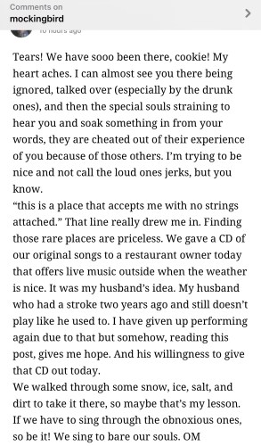 Why was my heart full? It all came together to remind me of this healing performance I gave at a Unity church (years ago), with a Live band! I’m no Carly Simon, but I love this song! Ha!