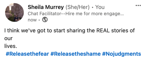 Yes, sometimes I get too-involved in chats on Facebook and LinkedIn. Even sometimes on Truth Social. But each time I do this, I learn to own my point of view and the truths that resonate within my Self. If people don’t agree, they are free to drop off! Ha! I usually keep quiet if I don’t agree with someone, but often will jump in and bolster someone who is expressing a sentiment I agree wholly with, such as the following: