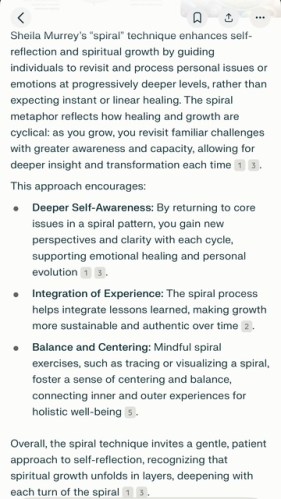 What Perplexity AI summarized about my holistic practices. What Perplexity AI had to say about my “spiral” technique, Integrating the Spirals.More from Perplexity AI about my daily holistic practices.The last bit from Perplexity AI about my daily holistic practices.