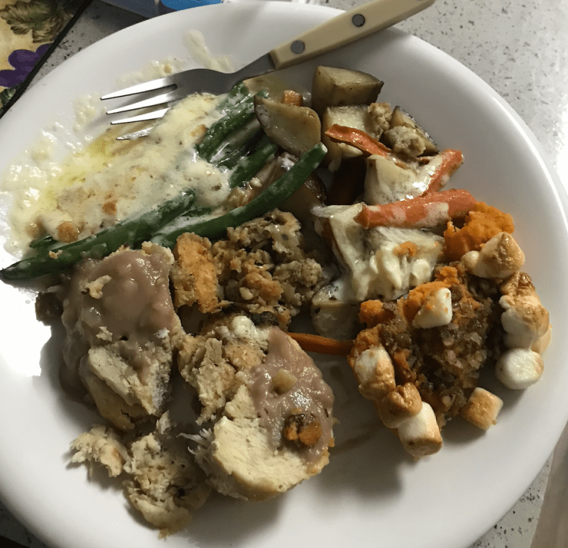 Hours later, I can’t even look at the fudge. Ha! I haven’t been able to put another bite of food in my mouth. Mind you, I’ve only been eating one meal a day for a few months, and this was more food than I would normally ever eat. I’ve been doing so good in regard to diet and exercise that I don’t want to set myself back much simply to celebrate a holiday. Of course we still have Christmas and my birthday to get through, but after that, I’m planning on a three-day water fast. I understand all too well what eating too much can do to a body.