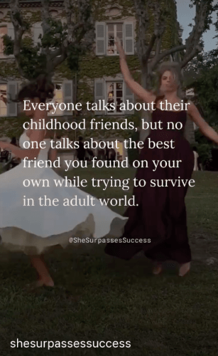 Meme: “Everyone talks about their childhood friends, but no one talks about the best friend you found on your own while trying to survive in the adult world.” –@SheSurpassesSuccess