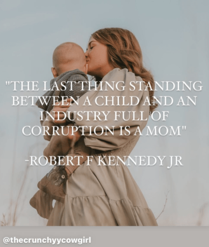 Screen capture from email: “VACCINATION – Most U.S. Health Care Workers Reject COVID-19 Booster Shot This Year. –Read the story at: https://thevaccinereaction.org/2024/11/most-u-s-health-care-workers-reject-covid-19-booster-shot-this-year/Meme: “There is absolutely nothing wrong with wanting you, your family, and your community to simply exist as natural, organic, pharmaceutical-free human beings. You are not bad or wrong. Don’t let anyone condition you to believe otherwise.” –D. Alec Zeck @Alec_ZeckMeme: “The last thing standing between a child and an industry full of corruption is a mom.” –Robert F. Kennedy, Jr. shared by @thecrunchycowgirl